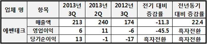 에쎈테크의 이 같은 실적은 지난해 부진했던 실적을 만회해 가는 과정으로 분석되고 있다.