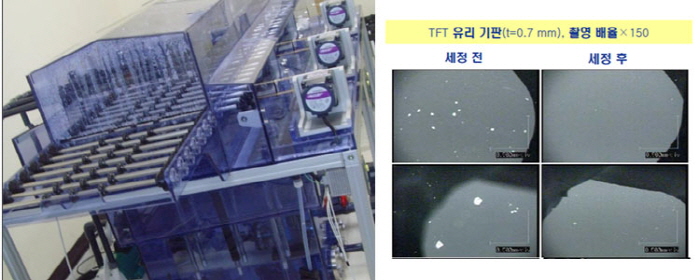 스마트폰 커버글라스 등 WET(습식) 세정공정에 있어 화약약품을 사용하는 대신 물에 미세기포를 발생시켜 세척하는 친환경 설비가 개발돼 화제다.