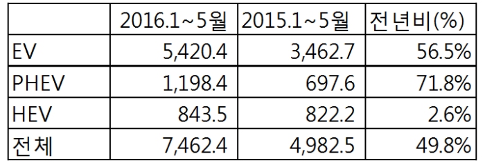 SNE리서치는 올해 1월부터 5월까지 전세계에 출하된 전기차에 적재된 배터리는 총 7.5GWh로 전년대비 50% 성장한 것으로 집계됐다고 밝혔다.