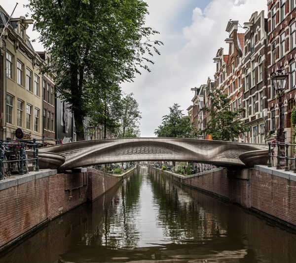 ▲ MX3D가 3D프린팅으로 제작한 네덜란드 암스테르담 12m 길이의 다리네덜란드의 로봇 3D프린팅 시스템 전문기업 MX3D가 6미터 이상 대형 금속 부품을 적층할 수 있는 WAAM(와이어아크 적층제조) 장비를 출시해 우주항공, 건축 등에 활용이 확대될 전망이다.