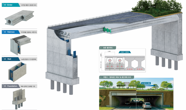 게다가 시공 방식도 혁신적이다. 대형 장비 투입이 어려운 협소 구간에서도 소형 장비로 시공할 수 있어, 도심지 철도 구간이나 고속도로, 간선도로 복개에도 적용이 가능하다.