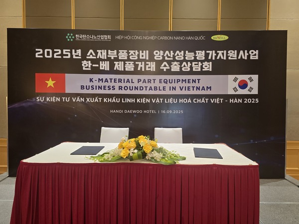 한국탄소나노산업협회(이하 협회)는 9월 15일부터 19일까지 4박 5일간 베트남 하노이 대우호텔에서 ‘2025 한-베 제품거래 수출상담회(K-Material Part Equipment Business Roundtable in Vietnam)’를 개최한다.