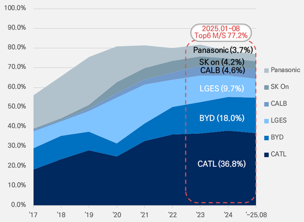 주로 테슬라에 배터리를 공급하는 Panasonic은 올해 배터리 사용량 25.8GWh를 기록하며 6위에 올랐다. 파나소닉은 최근 강화된 미국의 중국산 배터리 및 원자재 규제에 대응해 북미 중심의 공급망 재편에 속도를 내고 있다. 특히 중국산 소재 의존도를 줄이고, 현지 조달 확대 및 신규 소재 확보를 통해 배터리 생산의 안정성을 강화하는 데 주력하고 있다. 이러한 전략은 향후 북미 시장 내 사용량 회복과 점유율 유지에 중요한 기반이 될 것으로 예상된다.