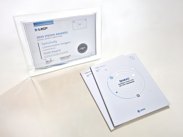 ▲ 삼천리 그룹이 발간한 2024년도 삼천리 애뉴얼리포트(右)와 ‘2024 비전 어워드’ 금상 상장삼천리그룹은 올해 발간한 2024년도 애뉴얼리포트가 美 커뮤니케이션 연맹(LACP)이 주최하는 ‘2024 비전 어워드(Vision Awards)’에서 금상을 수상했다고 23일 밝혔다.