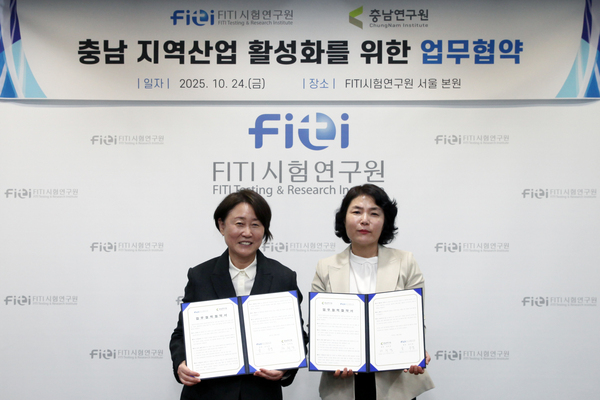 FITI시험연구원(원장 윤주경, FITI)이 충남연구원과 지역 맞춤형 정책과 기업 지원을 통해 충남 산업 혁신과 일자리 창출, 지역경제 활성화를 목표로 협력에 나섰다.