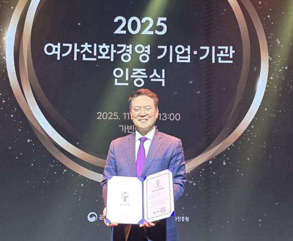 ▲ 바커케미칼코리아 조달호 대표이사가 여가친화경영 기업·기관 인증식에 참석해 기념촬영 하고 있다.바커케미칼코리아가 일·생활 균형을 통해 구성원들의 근무 만족도를 높이고 업무에 몰입할 수 있는 환경을 조성한 노력을 인정받아 여가친화기업으로 선정됐다.