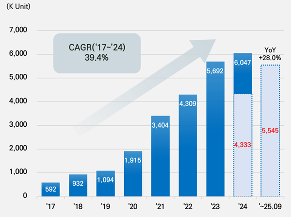 기타 지역(중동, 남미, 오세아니아 등)은 전년대비 34.8% 증가한 13.8만대를 기록하며 전체 시장의 5.2%를 차지했다. 해당 지역들은 전기차 시장 확산이 초기 단계에 머물러 있으며, 국가별 정책 지원과 인프라 구축 수준의 격차가 여전히 크다.