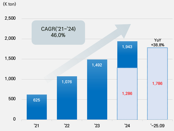 상위권이 모두 중국계라는 사실은 LFP 양극재 시장이 사실상 중국 독점 구조임을 분명히 보여준다. LFP의 고성장은 중국 소재 기업들의 글로벌 지배력 강화로 이어지고 있으며, 전 세계 배터리 소재 공급망에서 중국 의존도가 더 고착화되는 흐름을 만들고 있다는 설명이다.