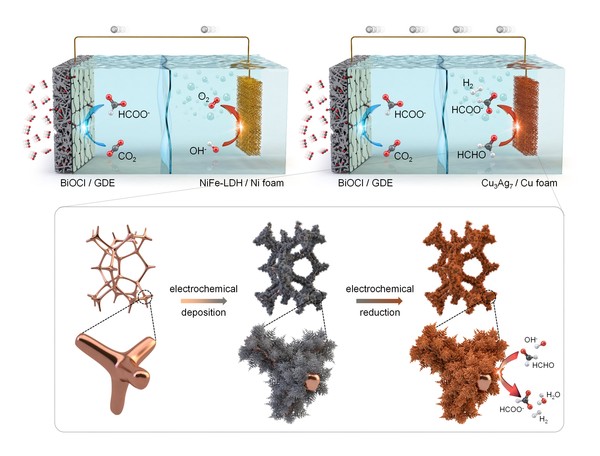 UNIST는 신소재공학과 조승호 교수와 에너지화학공학과 권영국·이재성 교수팀이 이산화탄소를 포름산으로 바꾸는 초저전압 전기화학시스템을 개발했다고 12일 밝혔다.