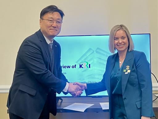 ▲ 철도연은 미국 MxV Rail과 철도 기술 연구분야에서의 협력 증진을 위한 협약을 체결했다. (사공명 철도연 원장(左), Kari Gonzales MxV Rail President & CEO(右))한국철도기술연구원(이하 철도연, 원장 사공명)이 미국 철도시험선로 운영기관과 협력을 강화해 철도 시스템의 안전성과 신뢰성을 과학적으로 검증한다.
