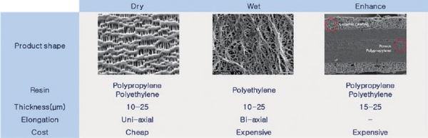 이를 방지하고자 분리막 표면에 특수 세라믹을 코팅하면서 두께가 두꺼워지고 가격이 올라가지만, 안정성이 우수하고 리튬 이동에 거의 영향이 없어 Advanced LIB용 분리막으로 연구가 활발하게 진행되고 있다.