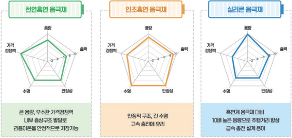 음극은 충전 과정에 양극에서 받은 리튬을 저장하는 곳이며, 기존 리튬이온전지에서는 인조흑연과 천연흑연을 활용했으나 리튬을 저장하는 양에 한계가 있다.