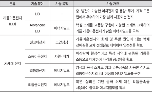 리튬이온전지의 한계를 극복하고자 이차전지의 활용처에 맞춰 다양한 차세대 전지가 개발되고 있다.