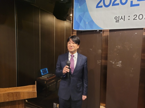 ▲ 이기안 제28대 한국분말재료학회 회장이 신년하례식에서 인사말을 하고 있다.