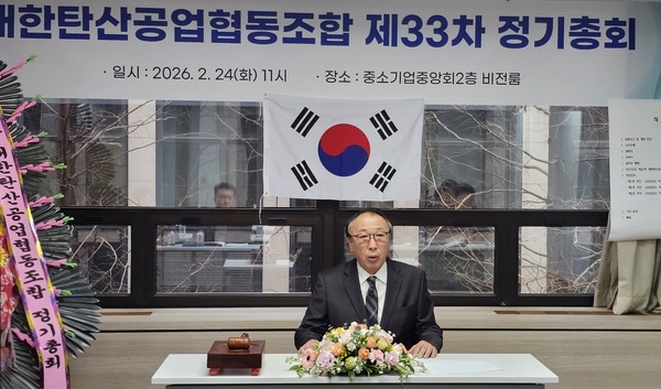 ▲ 이성철 대한탄산공업협동조합 이사장이 `제33차 정기총회`에서 인사말을 하고 있다국내 탄산업계가 공급 증가와 시장 경쟁 심화 속에서 상호 협력을 기반으로 시장 안정과 공동사업 강화에 나선다. 공동판매 회복과 신규 회원사 확대를 통해 시장 안정과 조합 수지 개선을 동시에 추진한다는 방침이다.