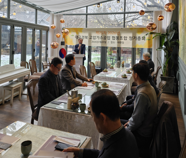 대구경북고압가스공업협동조합(이사장 에어텍 대표이사)은 25일 대구 아현정에서 ‘제25기 정기총회’를 개최했다. 이날 정기총회에서는 △2025년 결산의 승인 및 잉여금 처분 건 △2026년 사업계획 및 수지예산(안) △이사 해임 및 선임 건 등이 의결됐다.