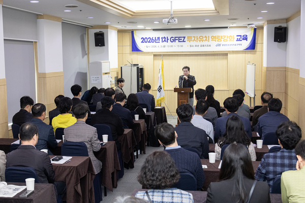 광양만권경제자유구역청(청장 구충곤, 이하 광양경자청)은 지난 3일 화순 금호리조트에서 직원 100여 명이 참석한 가운데 ‘2026년 제1차 투자유치 역량강화 교육’을 실시했다고 밝혔다.