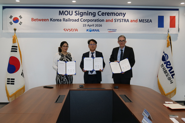 코레일은 23일 대전 본사에서 프랑스 철도기업 시스트라(SYSTRA), 메세아(MESEA)와 ‘철도 전기분야 기술협력을 위한 다자간 업무협약(MOU)’을 체결하고 기술교류회를 개최했다고 밝혔다.