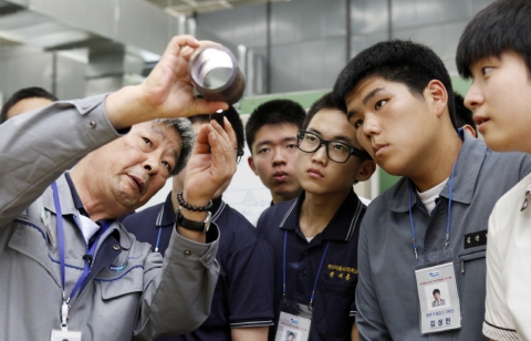 “아버지와 연세가 비슷한 명장 선생님들을 보고 느끼는 점이 많아요. 고등학교를 졸업하고 바로 취업해서 명장님처럼 우리나라 최고의 기술자가 꼭 되고 싶어요.” 두산중공업 창원공장에서 구슬땀을 흘리며 기술을 배우고 있는 수도전기공고 3학년 김주안 군의 다짐이다.