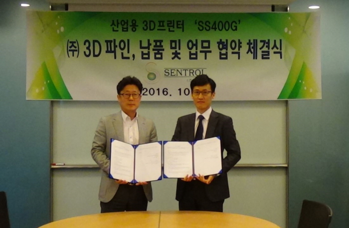센트롤은 3D프린팅 전문업체인 3D파인(대표이사 이영원)과 주물사 3D프린터 신제품 ‘SENTROL 3D SS400(G)’ 3대를 납품하고 통합솔루션을 지원하는 협약식을 11일 체결했다고 밝혔다.