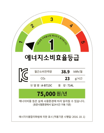 ▲에너지소비효율 1등급 라벨 예시