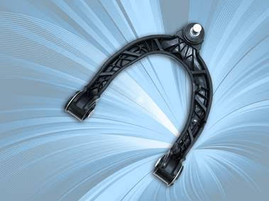 강철과 바스프의 폴리아미드 울트라미드로 제작된 하이브리드 서스펜션 암일진과 바스프가 기존 강철 스탬핑으로 제작된 제품보다 15% 가벼운 고성능 서스펜션 암을 개발했다.