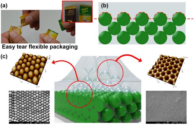 일회용 커피봉지 봉제선의 구조와 유사한 광결정-실리콘 복합체 구조의 개념도. 연구진은 박막형 센서 제작을 위해 ‘나노 규모 이지-컷 공정’을 고안해 냈다.국내 연구진이 커피포장지를 뜯는 간편한 행동에 착안해 일상속에서 색 변화를 통해 유해물질 여부를 간편하게 확인할 수 있는 기술을 개발했다.