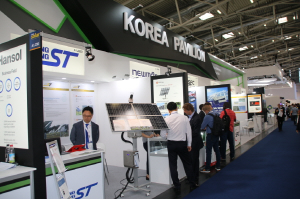 한국관은 국내 9개 중소·중견기업의 태양광 관련 제품 전시부스를 비롯해 우리나라 신재생에너지 정책 및 산업의 우수성을 홍보하는 홍보부스 등 총 16개 부스로 구성했다.