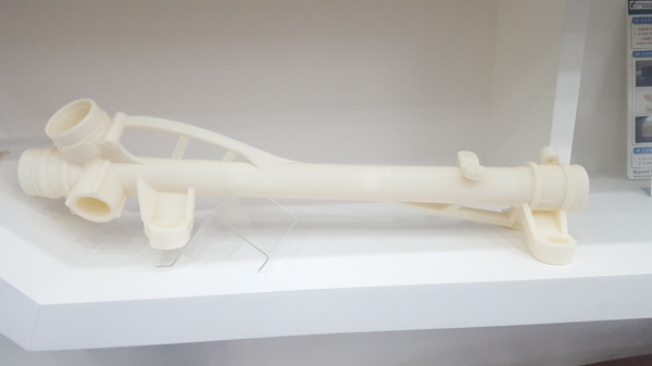 ▲ 프로토텍이 Fortus 900mc 장비로 출력한 현대모비스의 자동차 조향시스템 스티어링 기어 하우징 시제품. 기존대비 강도를 높이고 중량 최적화가 가능함을 사전에 검증할 수 있었다.