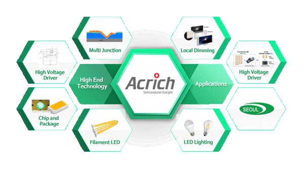 아크리치는 서울반도체가 세계 최초로 개발 한 독자적인 기술로 고전압(High Voltage) 구동 LED드라이버 기술과 좁은 면적 안에 다수의 LED 칩을 집적시킬 수 있는 멀티 칩 실장 기술(MJT) 등이 포함돼 있다. 사용된 LED 숫자가 줄어든 만큼 공간 활용도가 높아져 간단하게 회로를 디자인할 수 있고 전력 효율 20% 향상 및 원가절감도 가능하다.