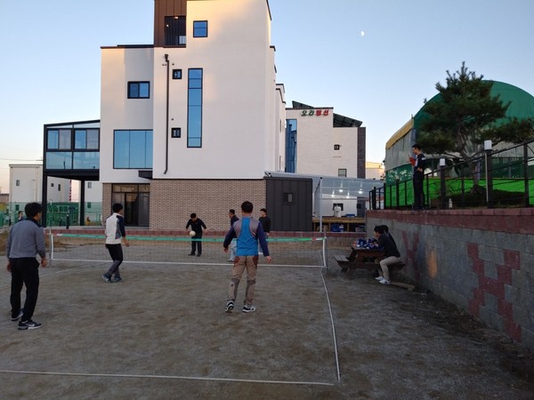 ▲ 실무자모임 회원들이 족구 시합을 하고 있다.