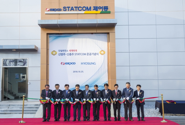 효성중공업은 25일 한국전력공사 신영주 변전소와 신충주 변전소에 각 400Mvar(메가바)급 스태콤(STATCOM: STATic synchronous COMpensator, 정지형 무효전력 보상장치)을 설치하고 준공식을 가졌다. 400Mvar 급 스태콤은 단일 설비 기준 세계 최대 규모다.