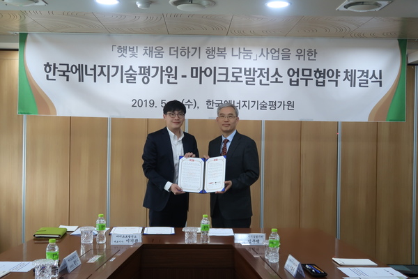에기평은 5월8일 에기평 대회의실에서 에너지기술개발사업 참여 기업인 마이크로발전소와 사회적 취약계층을 대상으로 미니태양광을 설치하는 업무협약을 체결했다.