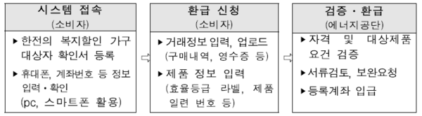 환급을 희망하는 대상 가구는 한국전력에서 ‘전기요금 복지할인 대상 확인증’을 발급받은 후, 대상 제품을 구매하고 관련 서류를 첨부해 8월23일 오픈 예정인 한국에너지공단 환급신청 온라인 홈페이지로 신청하면 된다.
