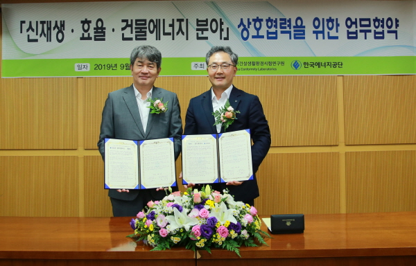 한국에너지공단(김창섭 이사장)과 한국건설생활환경시험연구원(윤갑석 원장)이 업무협력체계 구축을 통해 신재생, 효율 및 건물에너지 분야 보급 확산과 산업육성에 나선다.