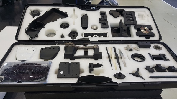 ▲ 마크포지드는 현장에서 사용 가능한 고강도 부품, 지그 등을 빠르게 생산할 수 있는 3D프린터를 소개했다.