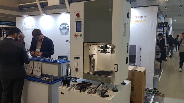 이번 전시회에서 올텍오토메이션은 스페인에 본사를 둔 GPAINNOVA社의 건식전해연마기 ‘DLyte’를 선보였다. 금속부품을 가공 또는 적층 후 흔적을 없애고 표면을 매끄럽게 하기 위해선 연삭·연마를 하거나 전해연마를 해야 하는데, 기존 전해연마기는 인산수용액을 사용해야 하기 때문에 폐수처리, 환경관리 유지 등 관리가 어렵다. 그러나 건식전해연마기는 폐수가 나오지 않아 친환경적이며 후처리한 금속 부품의 표면조도는 기존대비 3배 이상 향상될 정도여서 2~3번의 공정이 줄어들어 시간과 비용을 절감할 수 있다.