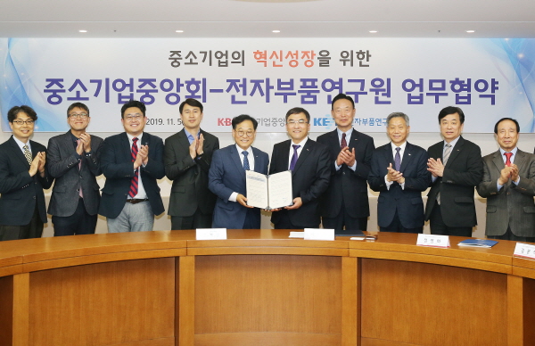 이날 협약식에 참석한 중소기업중앙회 서승원 상근부회장은 “기술개발 및 제품화 성공률의 지속적인 감소로 불확실성이 높아지고 있는 상황”이라며 “중앙회가 전자부품연구원과 함께 기술협력, 기술 애로해소를 도우며 중소기업의 혁신성장을 위해 노력해 나갈 것”이라고 말했다.