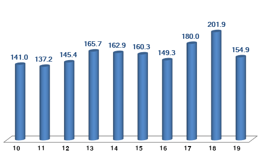 ▲ 연도별 10월 ICT 수출액(단위:억달러)