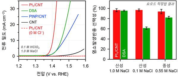 이 촉매는 기존의 상용 촉매(DSA)보다 귀금속 함량이 150배 적으면서도, 염소 발생 효율은 높고, 반응 조건은 덜 까다롭다.