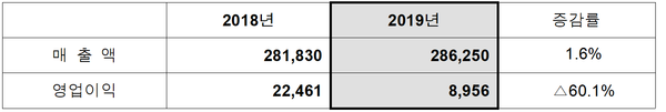 ▲ LG화학 2019년 경영실적(단위:억원, %)