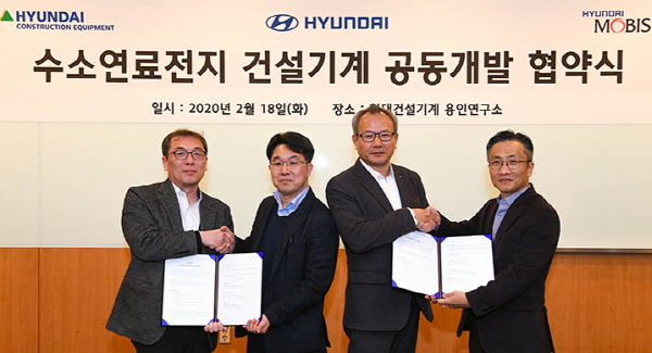 현대건설기계는 18일 경기도 용인시 마북연구동에서 현대자동차, 현대모비스와 함께 수소지게차 및 중대형 수소굴삭기 개발에 나선다는 내용의 ‘수소연료전지 건설기계 공동개발 협약(MOU)’을 체결했다고 밝혔다.