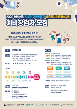 전기연구원은 경남 창원지역의 예비 창업자를 육성하기 위해 시행하는 ‘2020 경남 창원 강소연구개발특구 이노폴리스캠퍼스사업’ 참여자를 22일까지 모집한다. 이번 사업은 경남창조경제혁신센터와 함께한다.