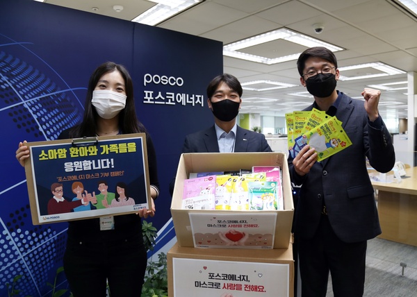 황석현 포스코에너지 에너지협의회 의장은 “직원들의 따뜻한 마음이 담겨 한장 한장 모아진 마스크가 소아암 환아와 가족들에게 응원이 되고 힘이 되었으면 좋겠다”고 전했다.