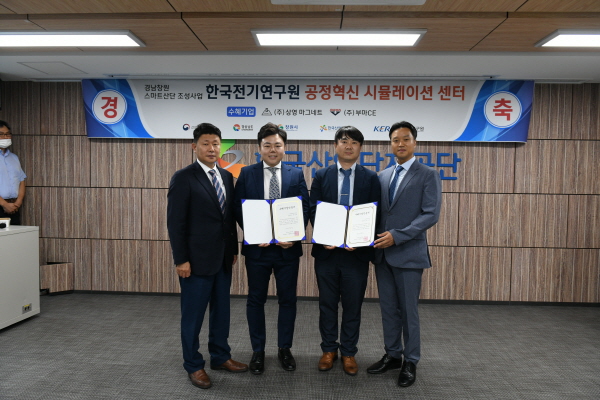 한국전기연구원(이하 KERI, 원장 최규하)은 경남창원스마트산단사업단(단장 박민원)과 함께 ‘2020년 스마트 선도산단 핵심사업’의 일환으로 ‘공정혁신 시뮬레이션 센터’ 구축 사업을 본격 추진한다. 양 기관은 7일 센터 운영위원회 개최를 통해 사업현황을 점검하고, 시뮬레이션 기술지원을 받은 1차 수혜기업에 대한 인증서 수여식을 가졌다.