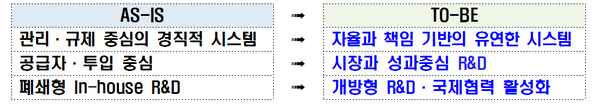 ▲ 산업R&D 혁신방향정부가 4차 산업혁명으로 인한 초불확실성 시대에 대응해 산업 R&D를 자율·시장·개방형으로 전환하기 위해 우수 R&D 기업에 규제를 일괄 면제하는 등 혁신에 나선다.
