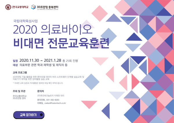 한국교통대는 대학육성사업의 일환으로 ‘2020 의료·바이오 비대면 전문교육훈련’을 실시한다.
