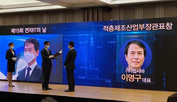 ▲ 적층제조 유공자 시상식에서 이명구 (주)헵시바 대표가 산업부 장관표창을 수상하고 있다.3D프린팅 소재·장비·서비스·소프트웨어 등 토털솔루션 기업 ㈜헵시바의 이명구 대표가 3D프린터 국산화 및 저변확대에 기여한 공로를 인정받았다.