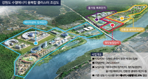 ‘강원 수열에너지 융복합클러스터’는 2027년 완공을 목표로 춘천시 동면 일대에 조성할 계획이다.