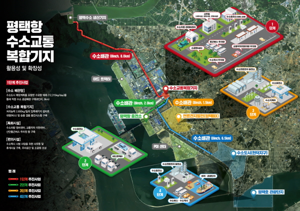 수소충전소를 중심으로 주차장, 수소차량 경정비센터를 구축해 평택시 수소 모빌리티 보급계획에 따라 2022년부터 수소 승용차·버스·교통약자 지원차량·트럭 등 수소차 1,000여대에 수소연료를 공급한다는 계획이다.